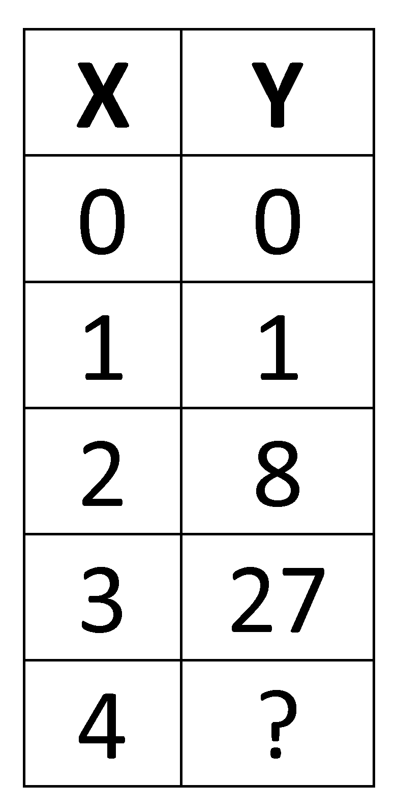 For the chart above, Y is consistently X^3. Therefore I would expect Y = 64 where X = 4.