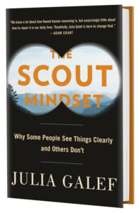 Galef’s book looks at the various real-life important steps a critical thinker must take to avoid missteps. The ideas she presents are old hat to seasoned critical thinkers but she has collected them all into an easy-to-digest book. She uses the metaphor of the Mind Scout vs. the Soldier, to point out that critical thinking isn’t about always being right (the Soldier); it’s also mapping out the truth as best as one can determine at any moment in time (the Mind Scout).